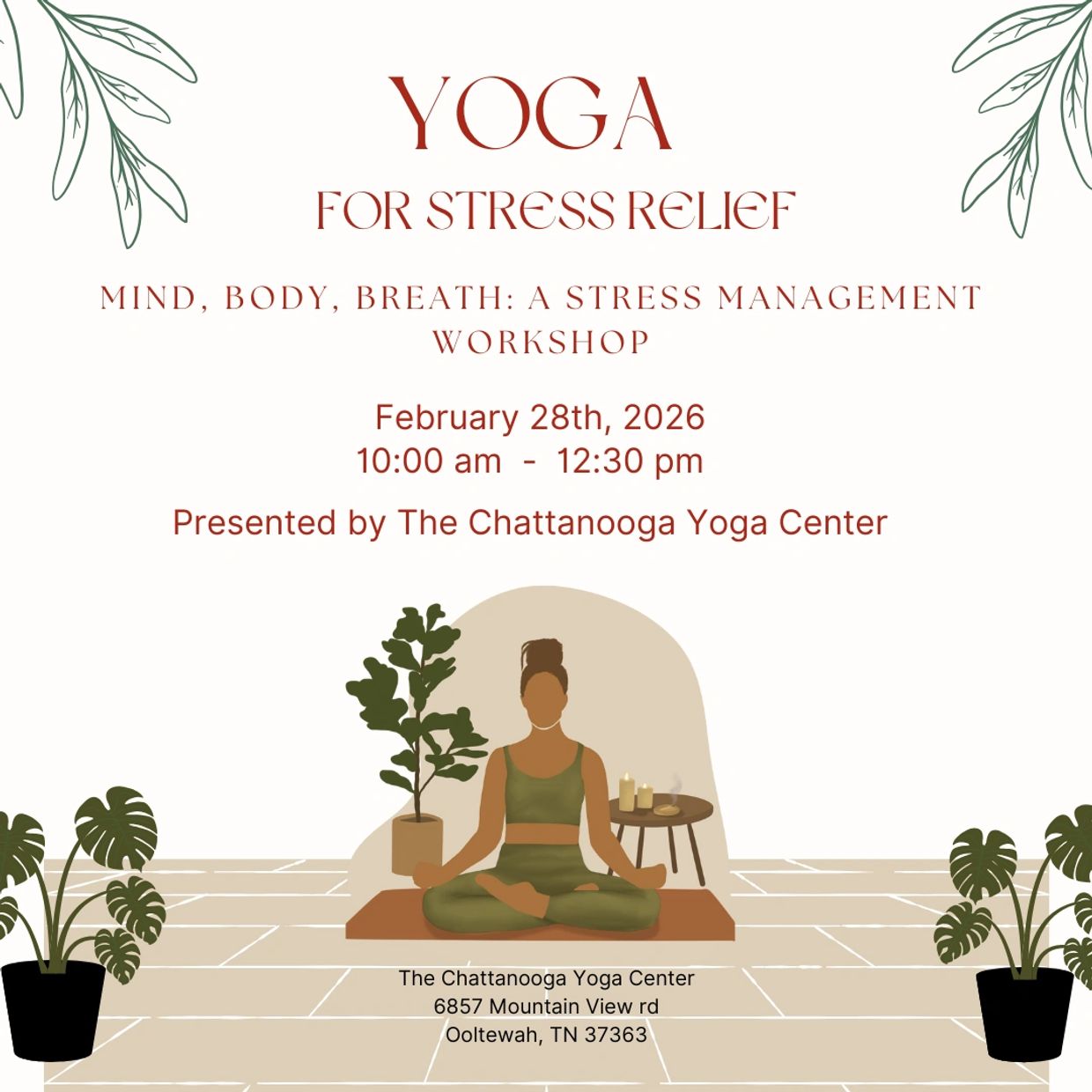 February 28th is the first part of a 3-part series focusing on Stress reduction, stress management and a deeper understanding of what stress really is. We will look at ways to address stressful moments using breath and movement. And we will dive deep into ways to approach stress throughout our lives. This 3-part series will highlight specific yogic practices that can help reduce stress and give you tools to navigate life. We will dive deep into Pranayama and poses and movement practices as well as explore our understanding of stress. As well as using ancient practices to transform modern life.